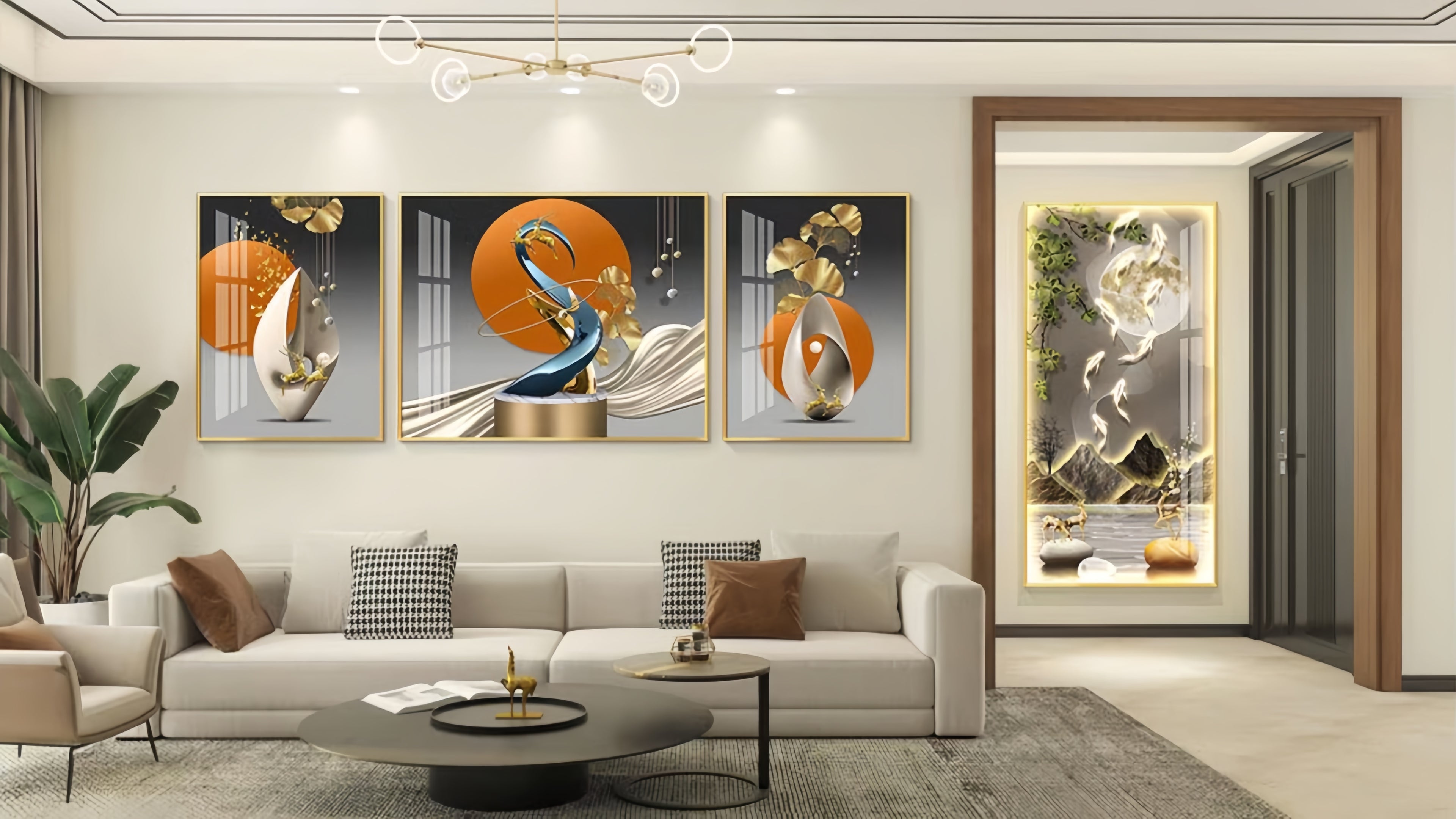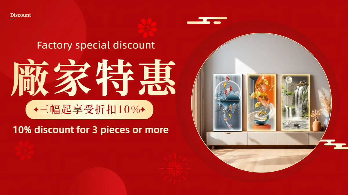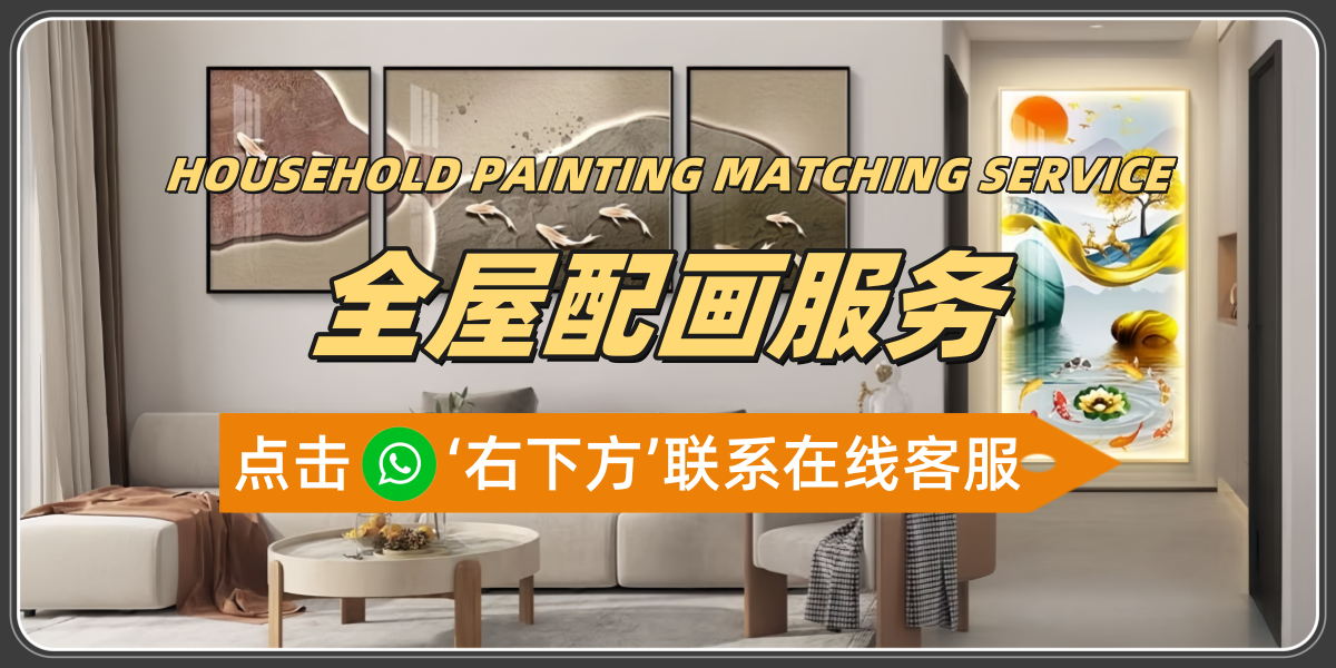 《家和万事兴》挂画以传统吉祥主题为核心,通过视觉元素传递家庭和谐的美好寓意。画面中央常以端庄的书法题写"家和万事兴"五字,笔墨浑厚有力,象征家庭根基的稳固;背景多配以牡丹、石榴等繁花,寓意富贵团圆与多子多福。常见构图还有仙鹤、青松等长寿意象环绕,或融入嬉戏的锦鲤、归巢的飞燕,暗喻家庭兴旺、游子归心。暖色调的运用营造出温馨氛围,而圆月、灯笼等元素则强化了团聚的深意。这幅作品既是传统家训的视觉化表达,也承载着"家庭和睦则百业可成"的朴素哲学,提醒观者以和为贵,以孝传家,在当代家居中延续着对家族昌盛的精神寄托。