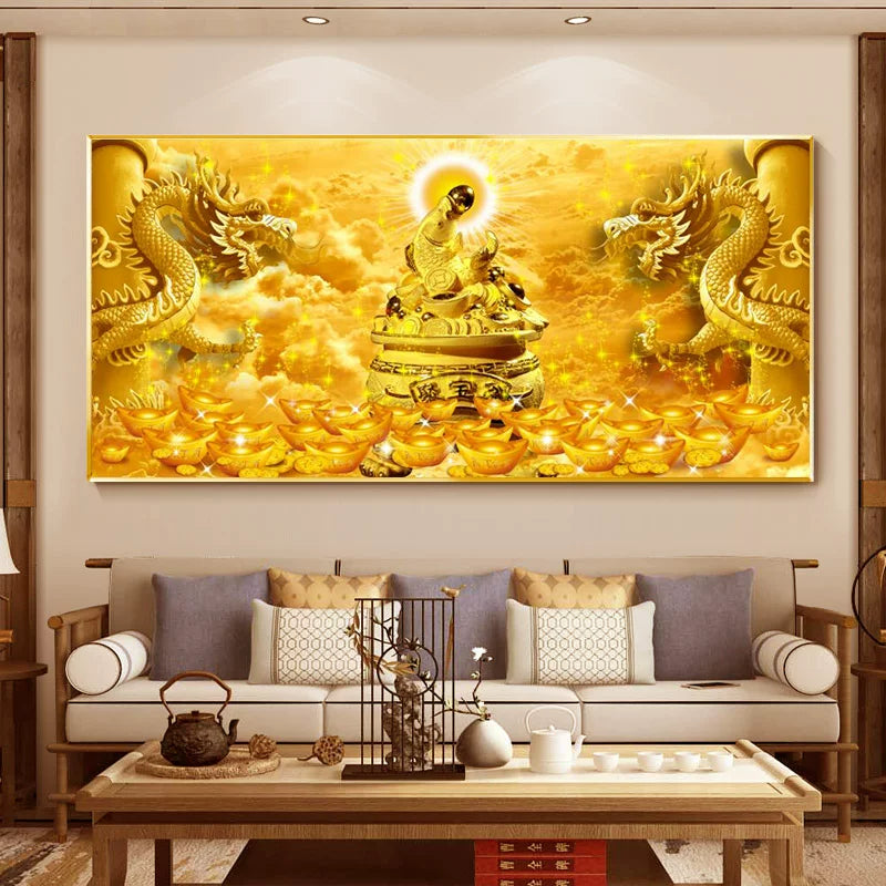挂于客厅沙发背景墙,能以 “龙气贵运” 为核心聚拢财福、镇宅稳运,是提升家宅贵运与财富运势的优质选择。