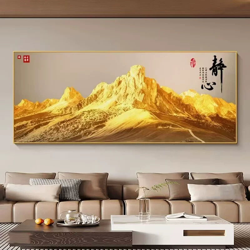 柔金色调的山脉气场舒缓,既保留 “金” 的聚财寓意,又避免过强气场扰眠;